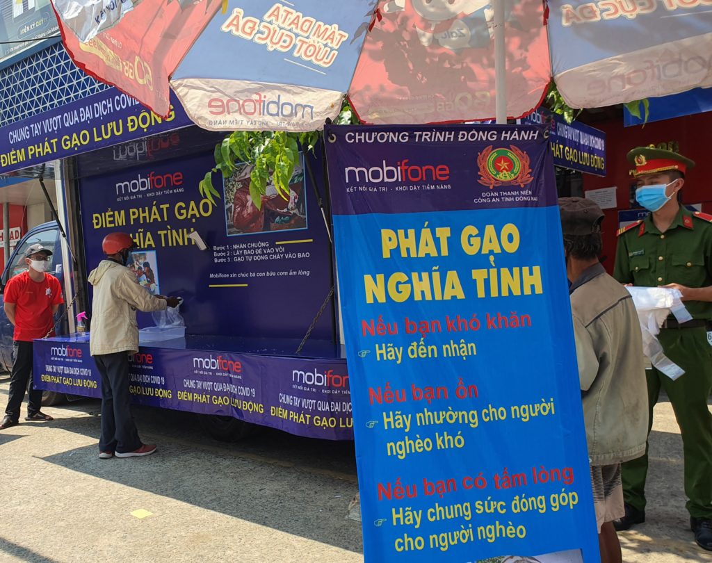 Ghi nhận trong ngày 20/4, lượng gạo phát ra đã vượt con số hơn 1 tấn sau khi chạy thử 2 ngày trước đó, trong kế hoạch đồng hành giữa MobiFone Đồng Nai và Đoàn thanh niên Công an tỉnh.