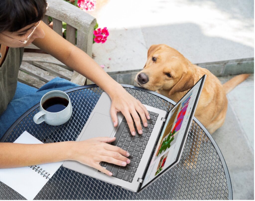 Tất cả hiệu suất này được gói gọn trong một thiết kế mỏng nhẹ chỉ 1,65kg. Bàn phím kết nối Bluetooth® có thể tháo rời và bản lề phẳng 180° giúp mở rộng không gian làm việc trực quan của chiếc laptop này lên tới 19,8 inch, cho phép người dùng linh hoạt sử dụng theo chiều dọc hoặc chiều ngang với nhiều chế độ: màn hình kép, chia sẻ nội dung, chế độ desktop hoặc laptop.