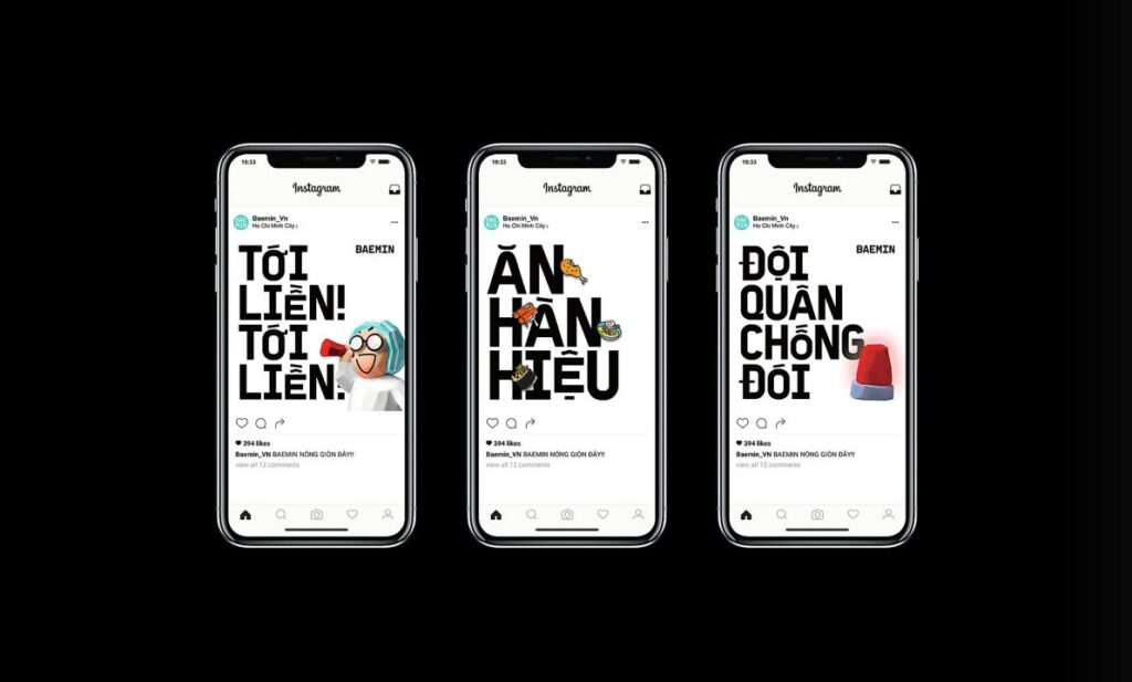 Với cách thức xây dựng thương hiệu được lấy cảm hứng từ thành công của BAEMIN tại Hàn Quốc, ứng dụng giao thức ăn BAEMIN đã phát triển và giới thiệu bộ phông chữ dành riêng cho thị trường Việt Nam mang tên BM Daniel. Bộ phông chữ này được BAEMIN và Rice Creative sáng tạo thông qua những quan sát và tìm hiểu về thị trường sở tại cũng như những nét đặc trưng trong văn hóa ẩm thực đường phố Việt Nam. Đặc điểm của BM Daniel là “ép” các dấu, mũ của các chữ vào một chiều cao giới hạn sẵn khiến cho dòng chữ trở nên sinh động và có hồn, tạo cảm giác gần gũi với những nội dung dí dỏm được truyền tải.
