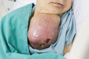 Ngày 3/11, bà được đưa đến Bệnh viện Vinmec Nha Trang trong tình trạng khối u vùng cổ – ngực khổng lồ, chèn ép khí quản và tĩnh mạch cảnh, kèm theo nhiễm trùng hoại tử rỉ mủ. Đáng lo ngại hơn, bà có nhiều bệnh lý nền nặng gồm tăng huyết áp, đái tháo đường type 2 và hẹp mạch vành.