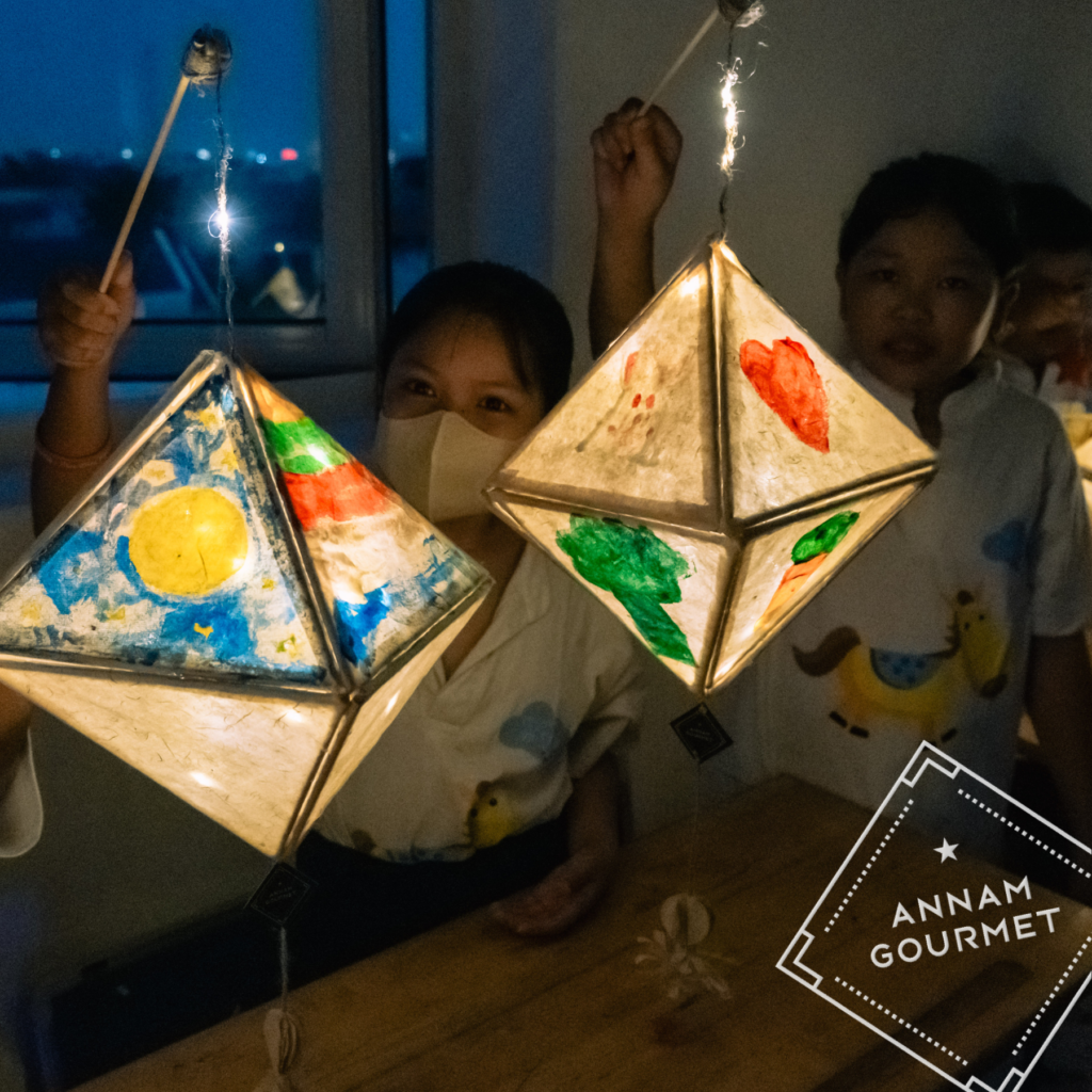 Những chiếc đèn lồng xinh xắn do các bé làm ra được với sự hướng dẫn của các thành viên Annam Gourmet