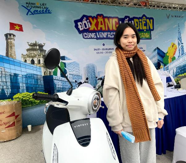Sự kiện còn thêm hấp dẫn và hào hứng với sự xuất hiện của nhóm khách hàng trẻ. Đi chiếc Honda Cub tới sự kiện, Mai Trang cho biết, bố mẹ hoàn toàn ủng hộ em chuyển sang xe điện để bảo vệ môi trường hơn và tiết kiệm chi phí. Vì đang còn là học sinh, nên em chọn mẫu xe dành cho người điều khiển chưa có bằng lái, và Evo Grand Lite đã ngay lập tức chinh phục được vị khách nữ trẻ tuổi.