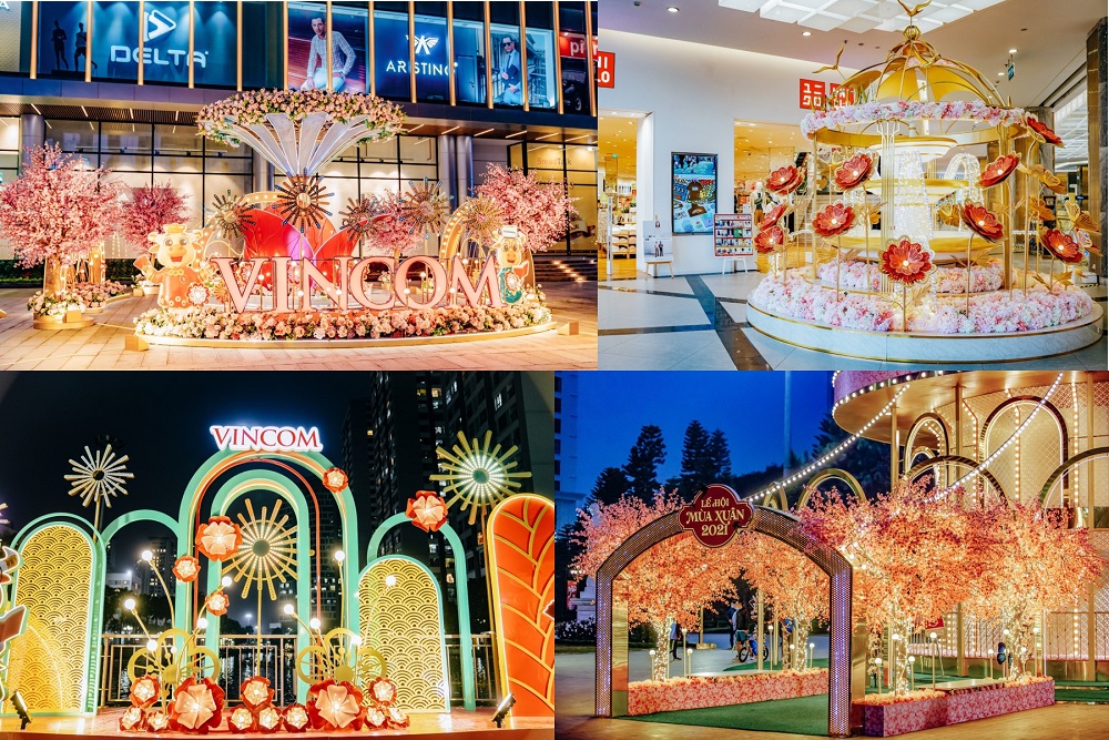 Bên cạnh đó, Vincom cũng tích cực đem đến không khí Tết cho người dân khi khoác lên mình sắc màu xuân rực rỡ và ngập tràn biểu tượng may mắn với lời chúc “Khai xuân khởi đầu mới – Tân niên vạn niềm vui”. Năm nay, sắc đỏ rực rỡ của các khung cảnh Tết tại Vincom mang đến niềm vui đón xuân mới như một sự cổ vũ tinh thần lớn dành cho mọi người trong thời gian chống dịch.