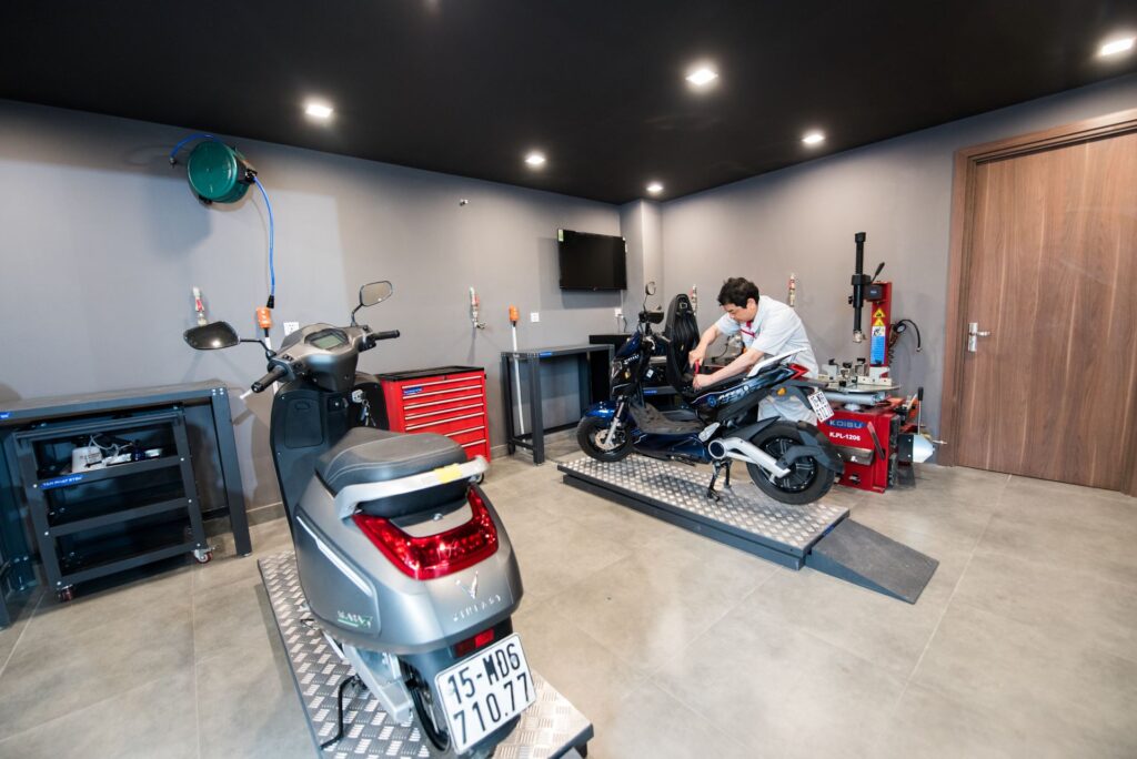 Với gần 200 xưởng dịch vụ chính hãng trên khắp cả nước và không ngừng mở rộng, VinFast mang đến sự tiện lợi cho chủ xe trong quá trình sử dụng. Toàn bộ hệ thống đại lý uỷ quyền 3S, xưởng dịch vụ đều trang bị những loại thiết bị hiện đại, tối tân, cùng đội ngũ kỹ thuật viên chuyên nghiệp. Bên cạnh đó, chi phí bảo trì bảo dưỡng các dòng xe điện VinFast được giới quan sát nhận định cạnh tranh hơn so với xe máy truyền thống. Hơn thế nữa, với lợi thế xưởng dịch vụ chính hãng, VinFast cung cấp phụ tùng thỏa mãn tiêu chuẩn chất lượng trong nước và quốc tế, cố định chi phí.