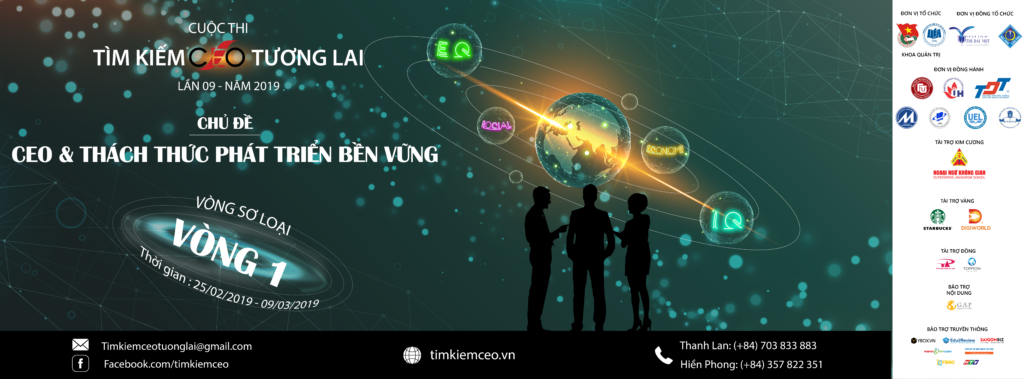 Cuộc thi Tìm kiếm CEO tương lai lần 09 – năm 2019 do Đoàn khoa Quản trị Đoàn trường Đại học Kinh tế TP. Hồ Chí Minh tổ chức sẽ diễn ra từ ngày 25/02/2019 đến ngày 19/04/2019.