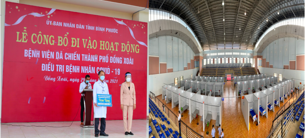 Bên cạnh đó, ngày 29/7, Hội Nữ doanh nhân tỉnh Bình Phước, Chi hội Nữ doanh nhân TP Đồng Xoài vừa cùng Tỉnh Đoàn Bình Phước trao 1.000 bộ đồ bảo hộ y tế, 30.000 khẩu trang tổng trị giá 120 triệu đồng cho Bệnh viện dã chiến TP Đồng Xoài.