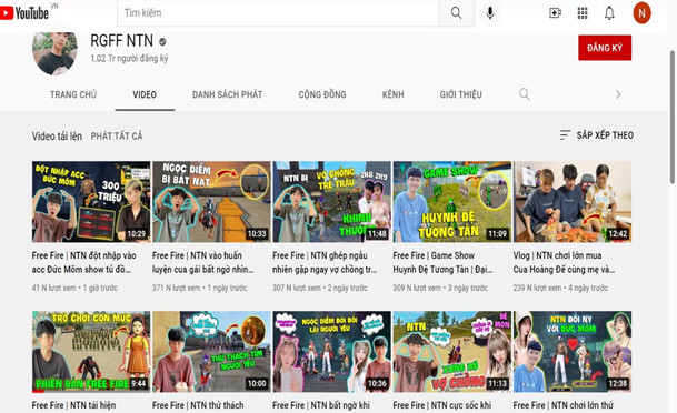 Kênh RGFF NTN chính thức đạt 1 triệu sub chỉ trong vòng 6 tháng.