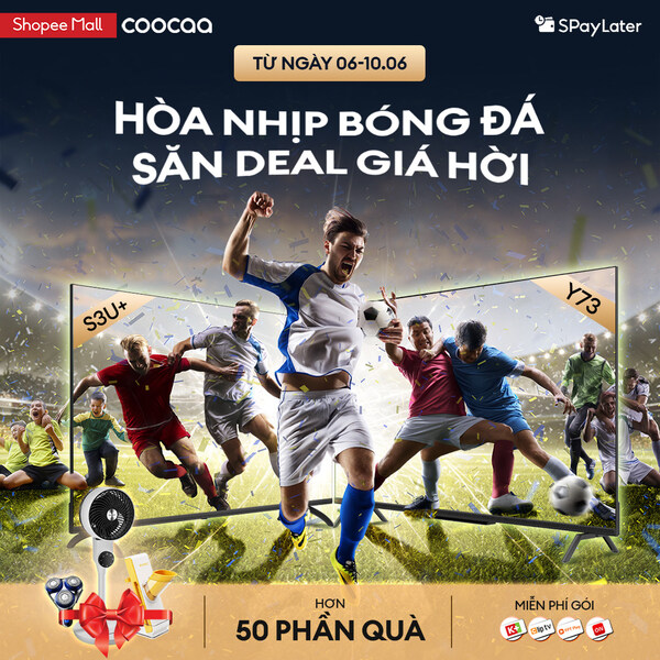 Đừng bỏ lỡ những ưu đãi và quà tặng hấp dẫn này trong đợt Sale 6/6 trên Shopee: https://bit.ly/3wX78XB. Hãy chọn những sản phẩm coocaa yêu thích của bạn và nâng trải nghiệm giải trí tại nhà của bạn lên một tầm cao mới!