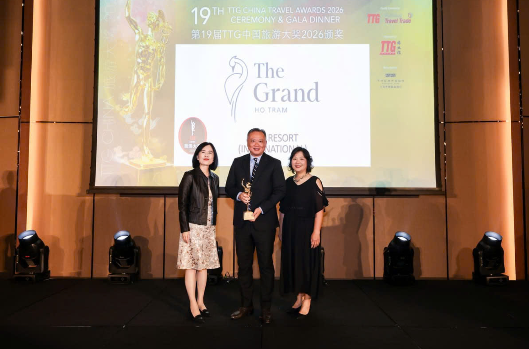 Trong khuôn khổ TTG China Travel Awards lần thứ 19 tổ chức tại Thượng Hải, The Grand Ho Tram được vinh danh ở hạng mục Best Resort (International), vượt qua nhiều đối thủ tại khu vực châu Á – Thái Bình Dương. Giải thưởng này ghi nhận mô hình tổ hợp nghỉ dưỡng – giải trí tích hợp, nơi lưu trú, ẩm thực và trải nghiệm được phát triển đồng bộ theo tiêu chuẩn quốc tế.