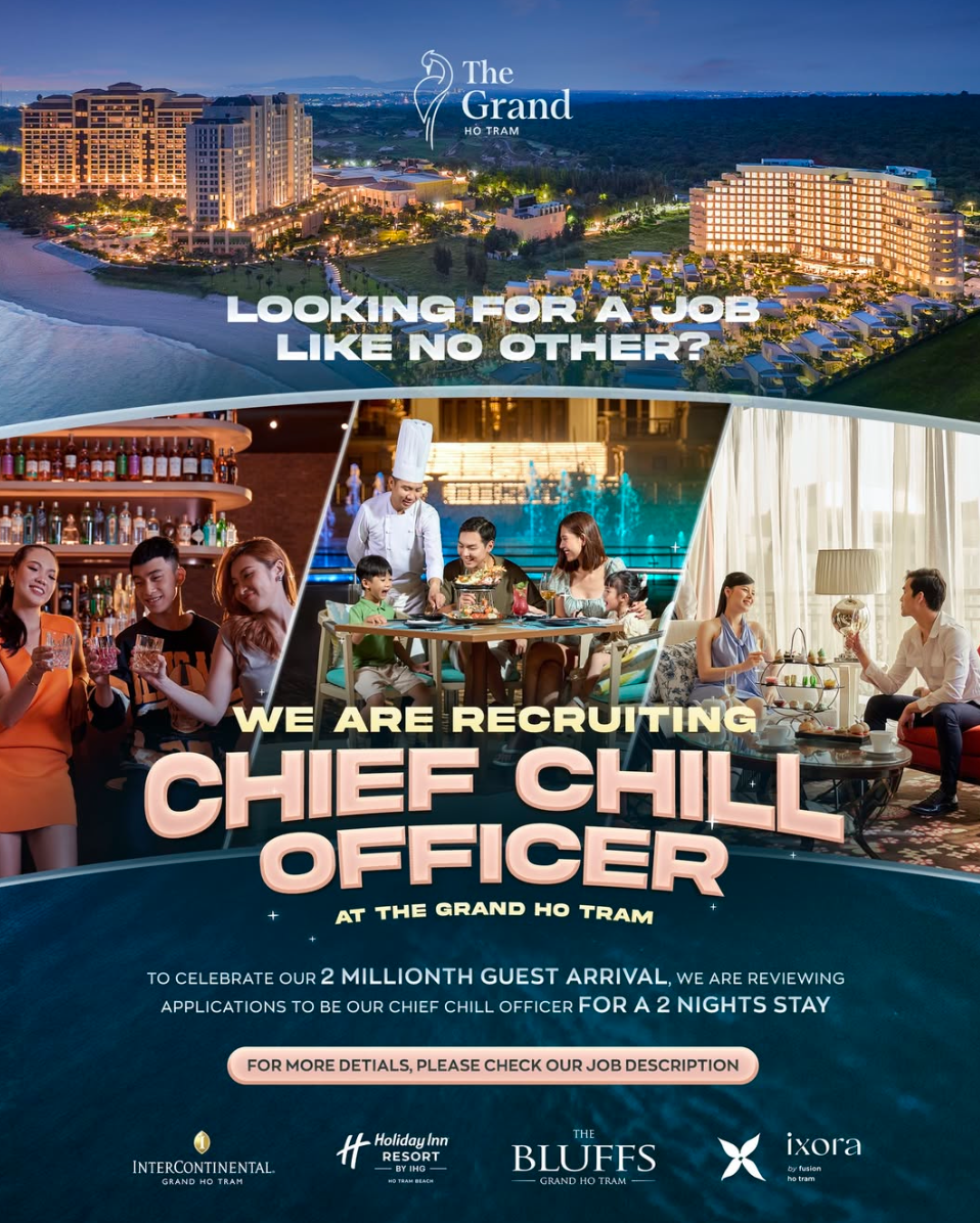 Để kỷ niệm dấu mốc này, The Grand Ho Tram triển khai chiến dịch tìm kiếm “Giám đốc Thư giãn” trên mạng xã hội. Người tham gia có thể chia sẻ hình ảnh hoặc video trải nghiệm tại resort kèm hashtag #2MthGuest và #TheGrandHoTram, với cơ hội nhận các danh hiệu như “Chief Chill Officer” hay “Foodie On Duty”. Chiến dịch kéo dài đến ngày 2/5 và công bố kết quả vào 8/5/2026.